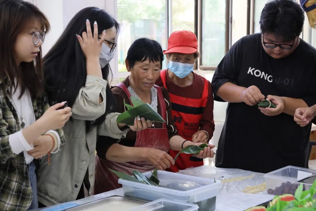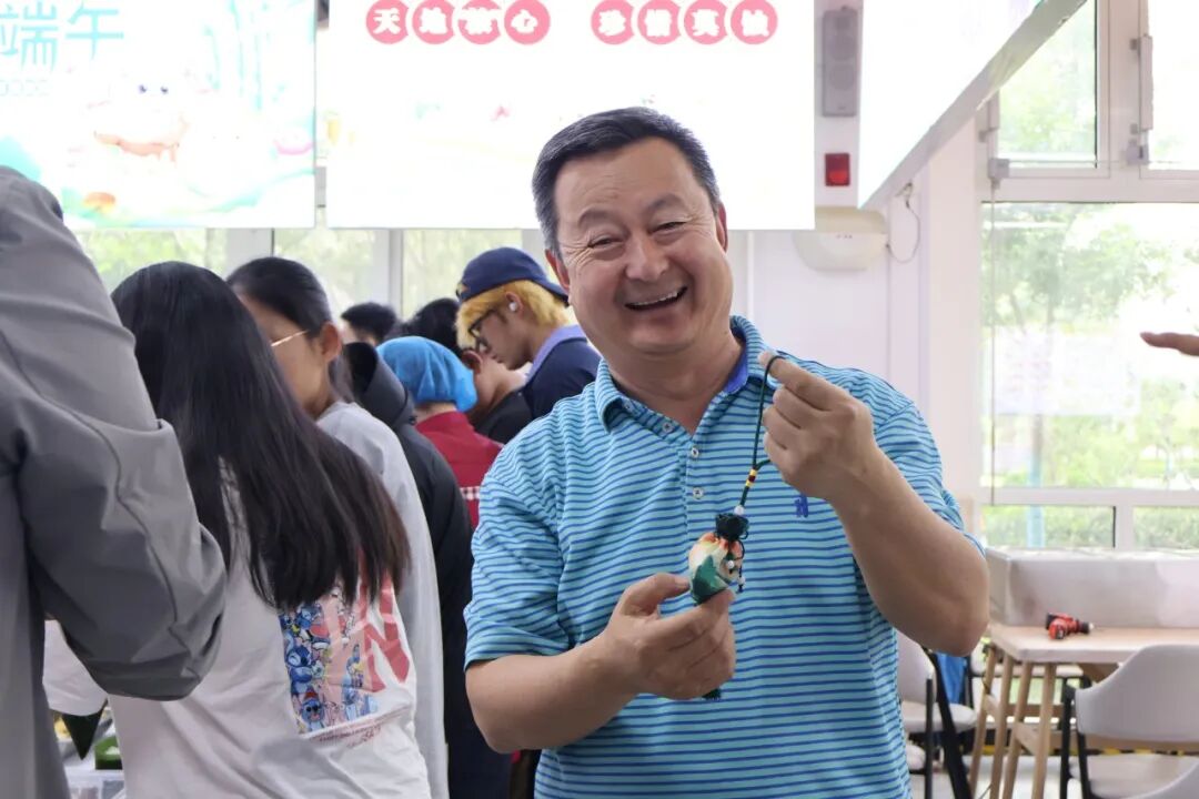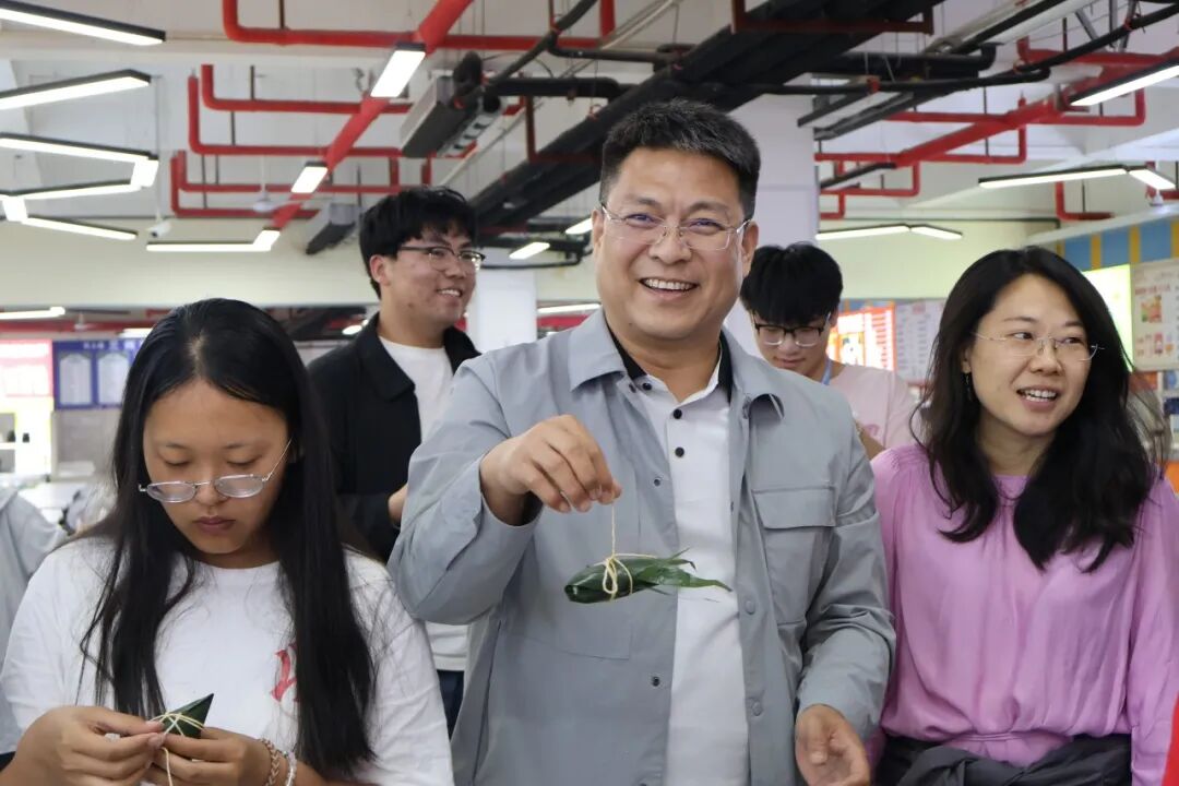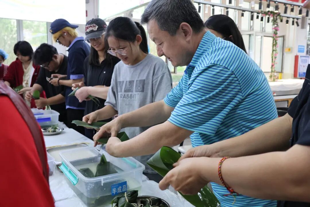 活动现场,丰富多样的环节吸引着同学们的热情参与。在包粽子区域,糯米、粽叶、红枣、豆沙等新鲜食材以及相关工具一应俱全。在食堂阿姨的耐心指导下,同学们纷纷动手尝试包粽子,学习这一传统劳动技能。不少同学在掌握技巧后,包出了形状各异的粽子,现场欢声笑语不断。校长助理张川和学生处副处长秦宏亮莅临现场,与同学们共享欢乐时刻。