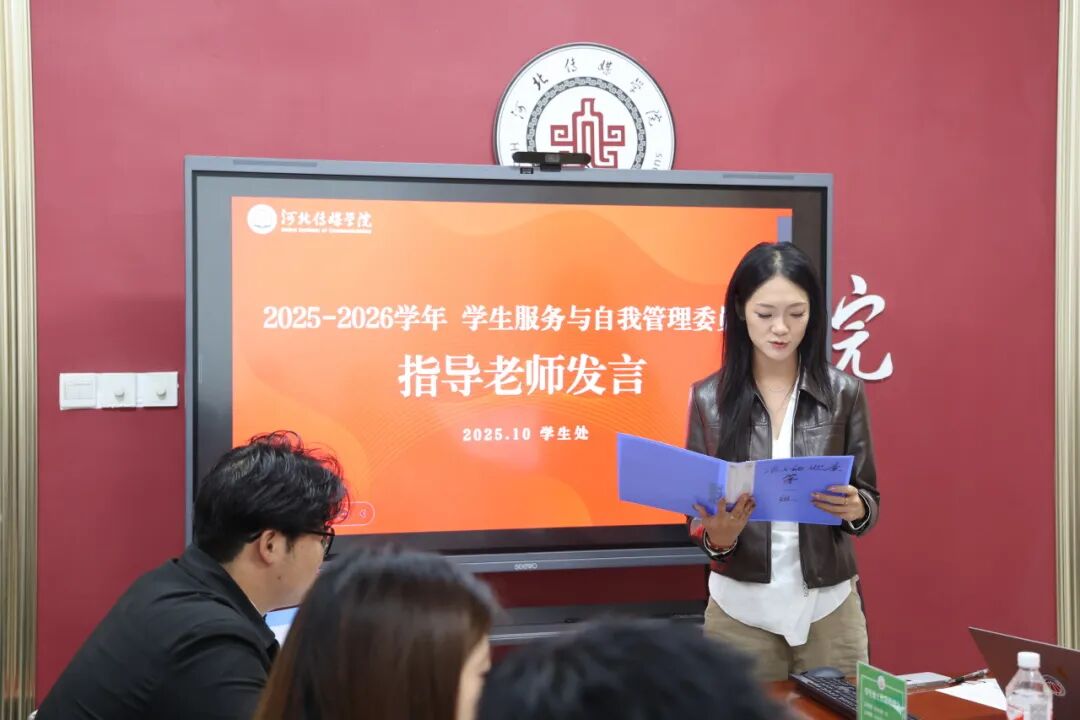为深入贯彻习近平总书记落实立德树人根本任务,夯实学生工作组织基础,明确新时代学生干部的职责使命。学生处学管会于10月12日在67连廊206会议室举行河北传媒学院学生处学管会2025年秘书团及各部门部长竞选。学生处刘军处长、王书敏副处长以及学生处老师共同参会,见证学生工作责任的郑重传递,开启服务同学、助力学院发展的崭新篇章。