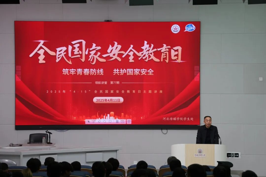 为深入贯彻落实总体国家安全观,进一步宣传普及国家安全知识,提升我校师生的国家安全意识。在第十个全民国家安全教育日来临之际,河北传媒学院学生处于4月11日在话筒楼大报告厅开展领航讲堂第77期暨“筑牢青春防线 共护国家安全”安全教育主题讲座。安全处处长刘秀义、学生处副处长王书敏、各二级学院书记、辅导员、安全处学生处全体工作人员及学生骨干300余人参加,学生处处长刘军主持。