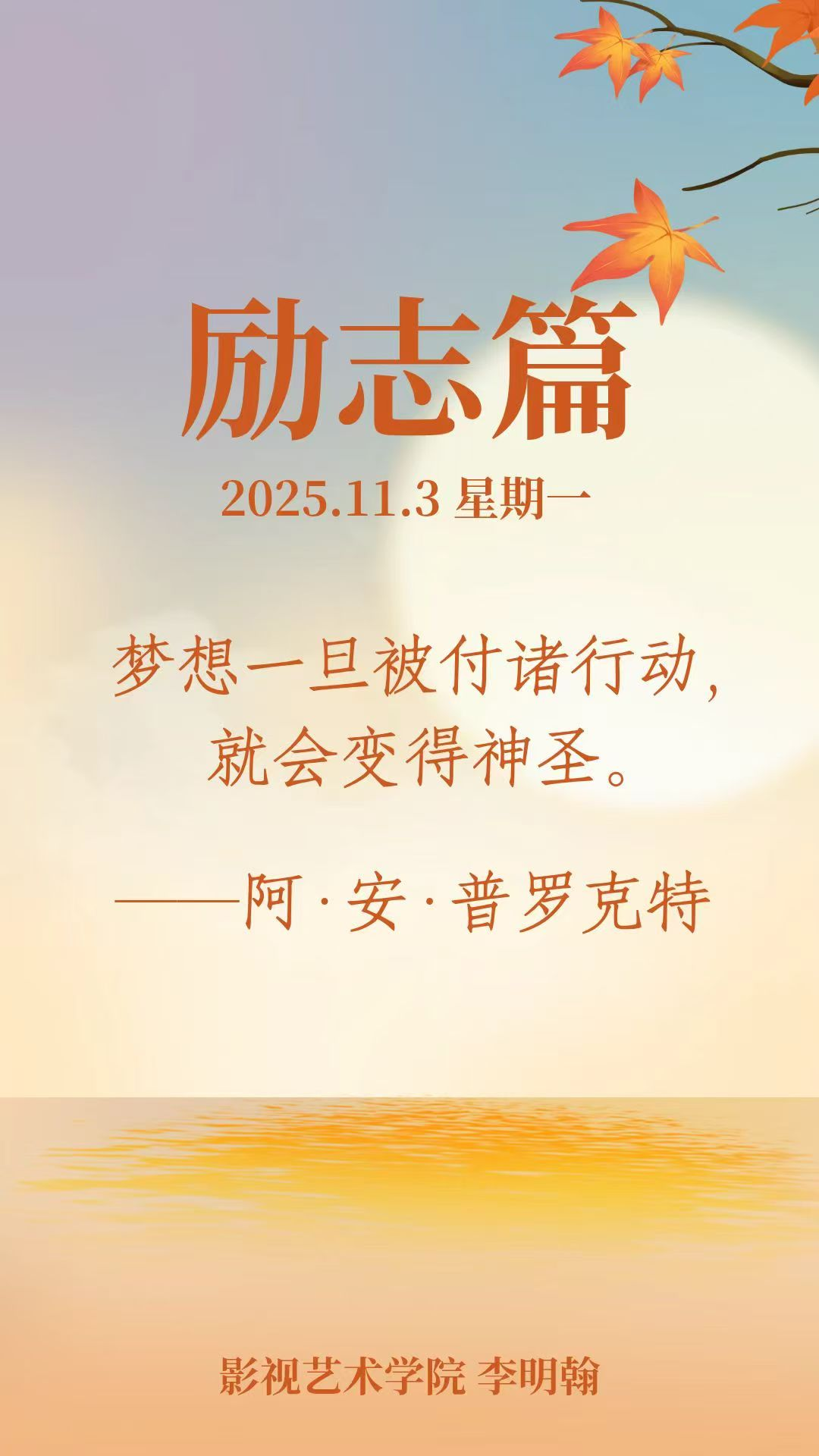 为积极响应总书记对青年的号召,营造良好的学习风气,引领广大河传学子坚定理想信念,争做新时代“四有”青年,河北传媒学院学生处特举办“写格言话人生”活动。本次活动推送的格言围绕“勤学篇、修德篇、明辨篇、笃实篇、爱国篇、励志篇、求真篇、力行篇”八大主题展开。活动于2025年3月24日正式启动,此后每日一句格言,每周进行一次集中推送。