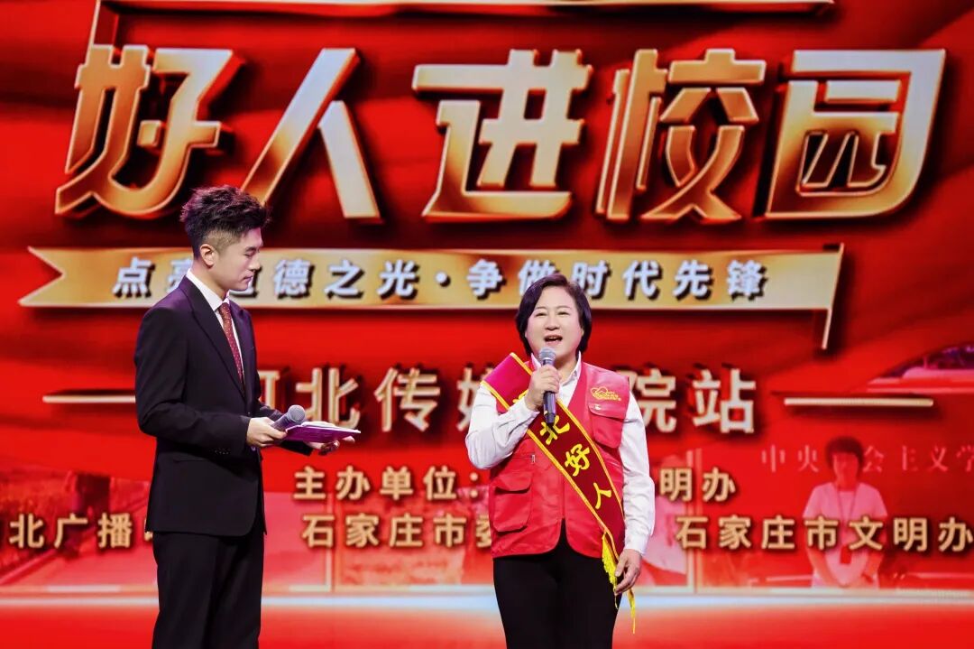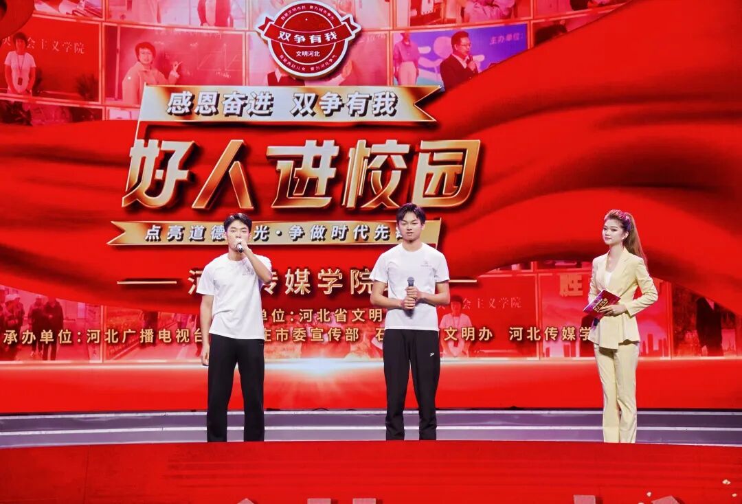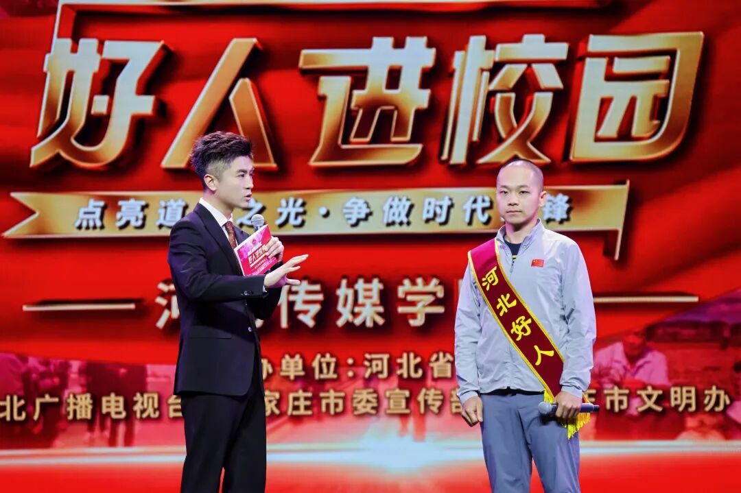 10月11日,由河北省文明办主办,河北广播电视台、石家庄市委宣传部、石家庄市文明办、河北传媒学院联合协办的“感恩奋进 双争有我—好人进校园”石家庄站活动,在我校警安校区隆重举行。省市有关单位和部门领导,“全国劳动模范”“中国好人”“河北好人”代表,以及我校党委书记赵红星、副校长高晓峰、校长助理张川与师生代表共400余人齐聚现场,聆听好人故事、感悟道德力量,让思政课堂在榜样引领中焕发鲜活生命力。